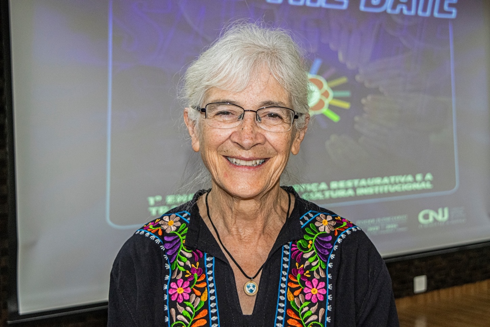 Nascida no Estado de Nova Iorque (EUA), de fala mansa, olhos pequenos, jeito doce e muito humilde, não é exagero dizermos que ela se tornou a ‘Mãe dos Círculos de Construção de Paz’, e referência internacional quando o assunto é difundir as práticas da Justiça Restaurativa. Acompanhada da tradutora e também instrutora de círculos de paz, Fátima De Bastiani, Kay ministrou nos dias 21 e 22 de setembro, no Tribunal de Justiça de Mato Grosso, o Workshop ‘Justiça Restaurativa e os Processos Circulares’.