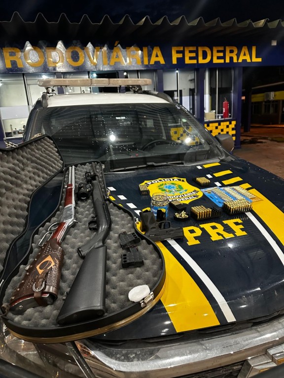 Todas as armas estavam municiadas e em pronto emprego, inclusive a pistola encontrava-se de fácil acesso. Ressalta-se ainda que um dos passageiros possui registro de CAC (Colecionador, Atirador e Caçador) e que a pistola e a carabina cal. 38 possuem certicado de registro em nome dele, porém a carabina cal. 22 não possui registro.