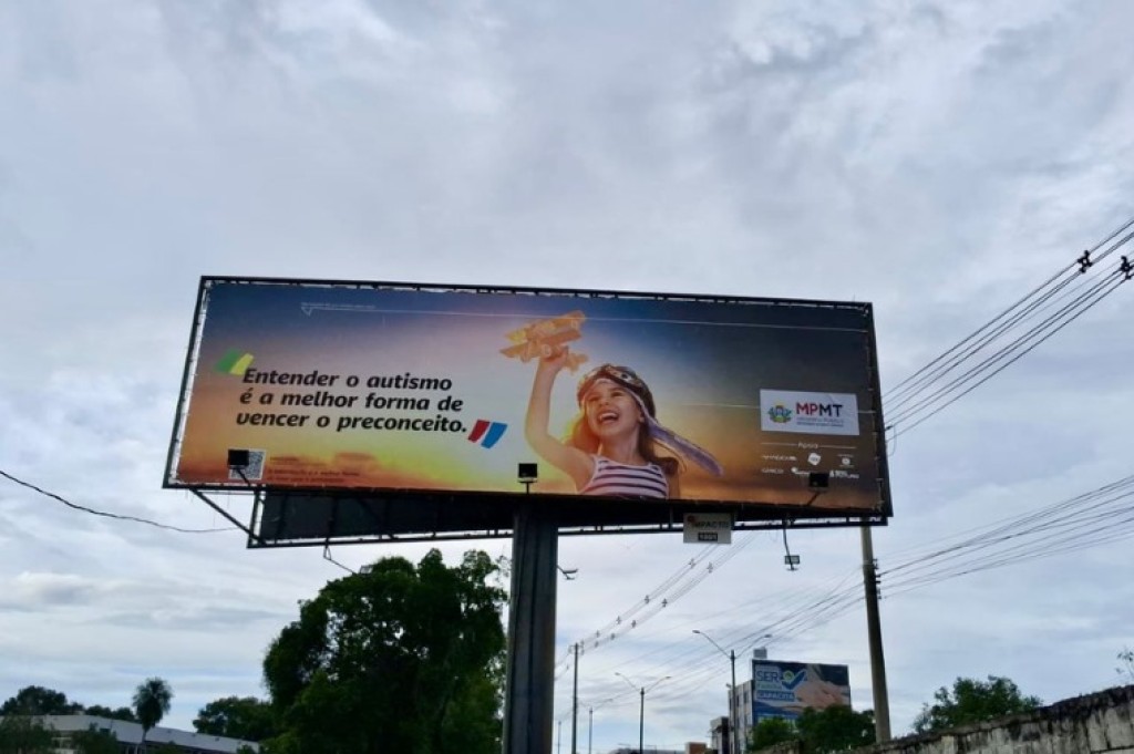 A campanha de conscientização sobre o Transtorno do Espectro Autista, desenvolvida pelo Ministério Público do Estado de Mato Grosso e parceiros, ganhou as ruas de Cuiabá. Outdoors foram colocados em pontos estratégicos nas avenidas das Torres, Archimedes Pereira Lima, Miguel Sutil, Pau Brasil e Dr Paraná. O material também está sendo divulgado nos ônibus (busdoor), monitores internos e em painéis de led. Um vídeo sobre a campanha também está sendo veiculado gratuitamente pela TV e rádio Centro América.