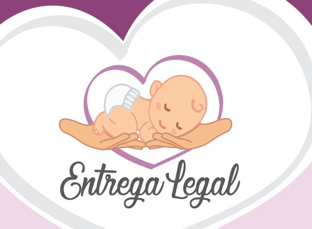 #ParaTodosVerem. Esta matéria possui recursos de texto alternativo para promover a inclusão das pessoas com deficiência visual. Foto 1: Imagem colorida. Logo do Programa Entrega Legal. Na imagem conta com um bebe sendo segurado por duas mãos, com um fundo rosa e o contornado por um coração. Foto 2: Imagem colorida: Print da reunião realizada sobre o tema. A tela está dividida com a imagem de quatro participantes.