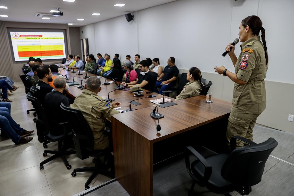 Durante a reunião, o comandante do Batalhão de Emergências Ambientais (BEA), tenente-coronel Pryscilla Jorge Souza, destacou que o Corpo de Bombeiros Militar de Mato Grosso atua anualmente em quatro fases: prevenção, preparação, resposta e responsabilização. Todas essas ações são integradas com os demais órgãos que fazem parte do Comitê do Fogo.