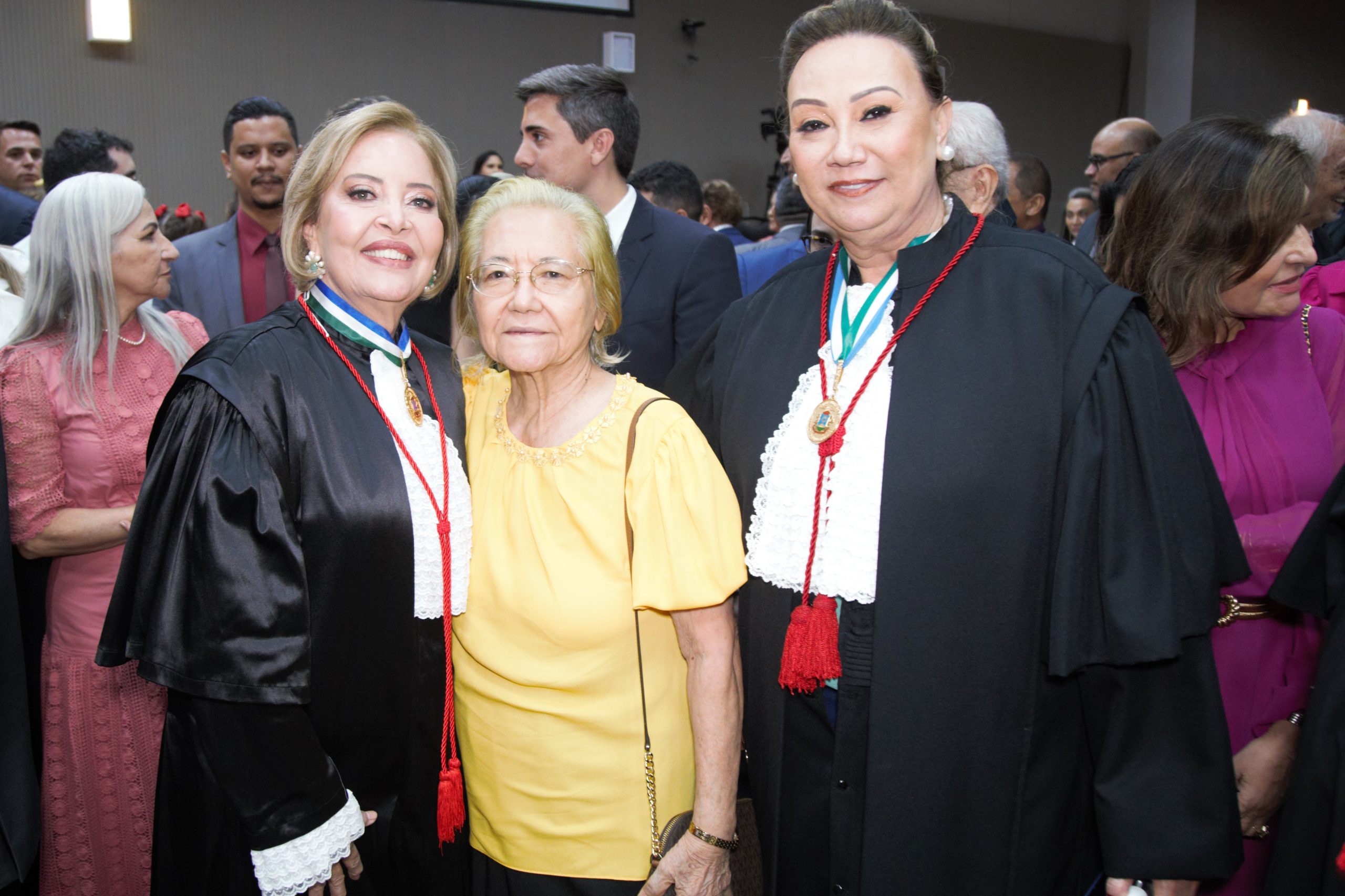 Descrição das imagens: Foto retangular colorida das desembargadoras Shelma de Kato (aposentada), Clarice Claudino e Maria Helena Póvoas.