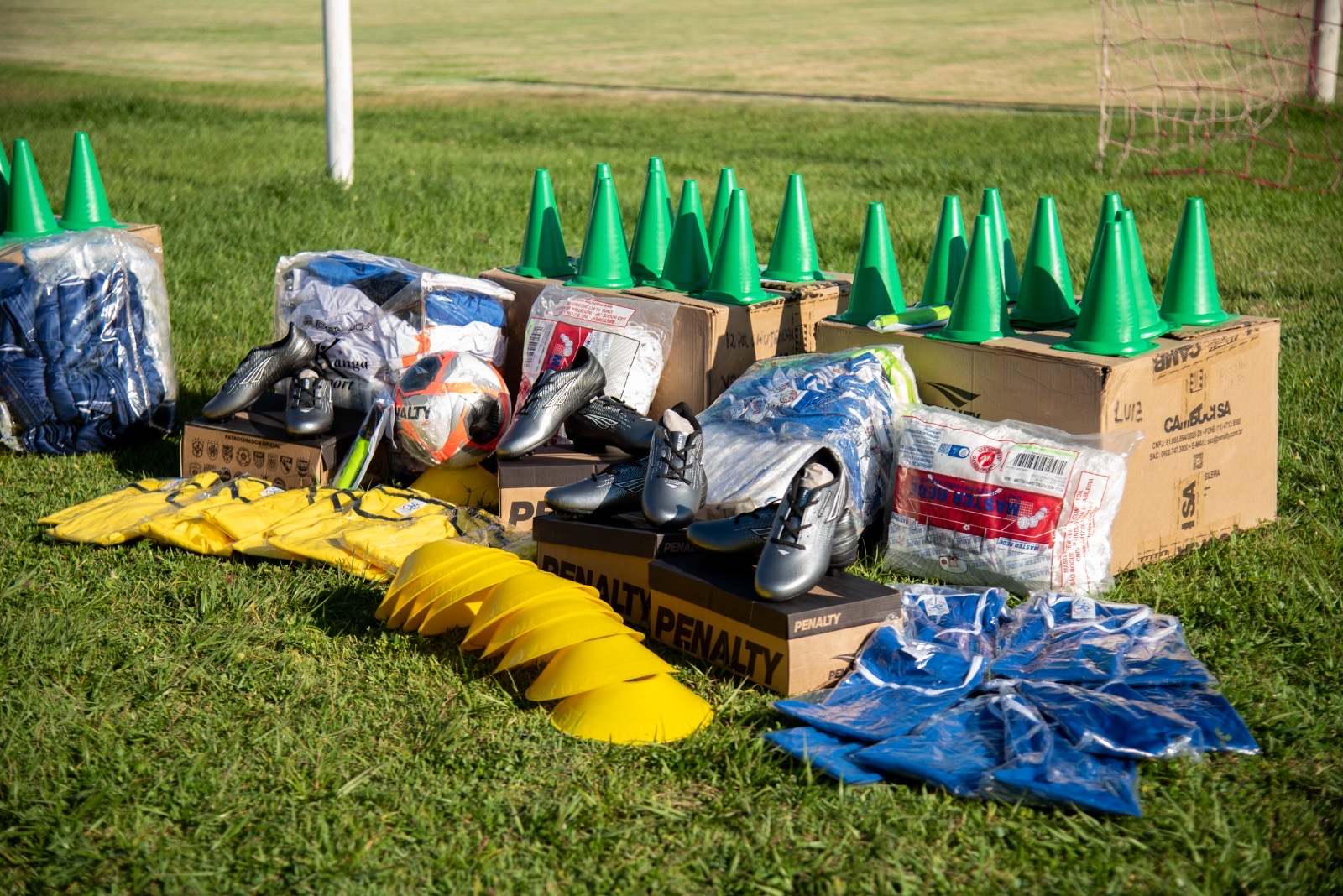 No campo do esporte e do desenvolvimento integral dos alunos, a Secretaria realizou a aquisição de kits de materiais esportivos, ampliando as possibilidades de práticas pedagógicas e atividades físicas nas unidades escolares.