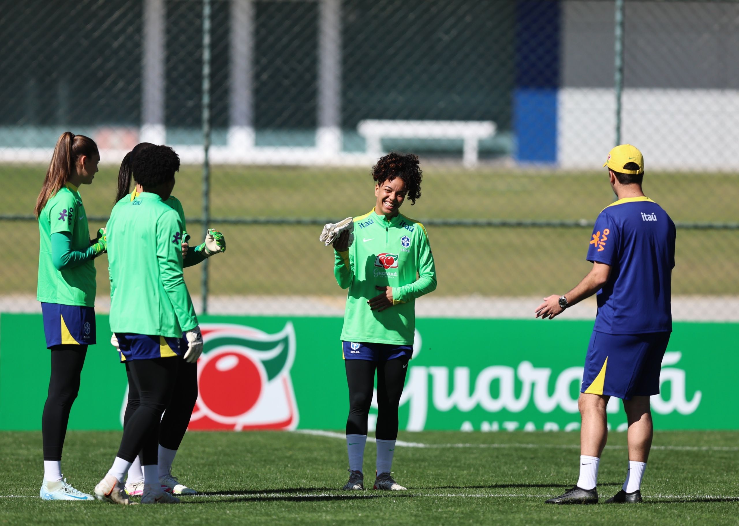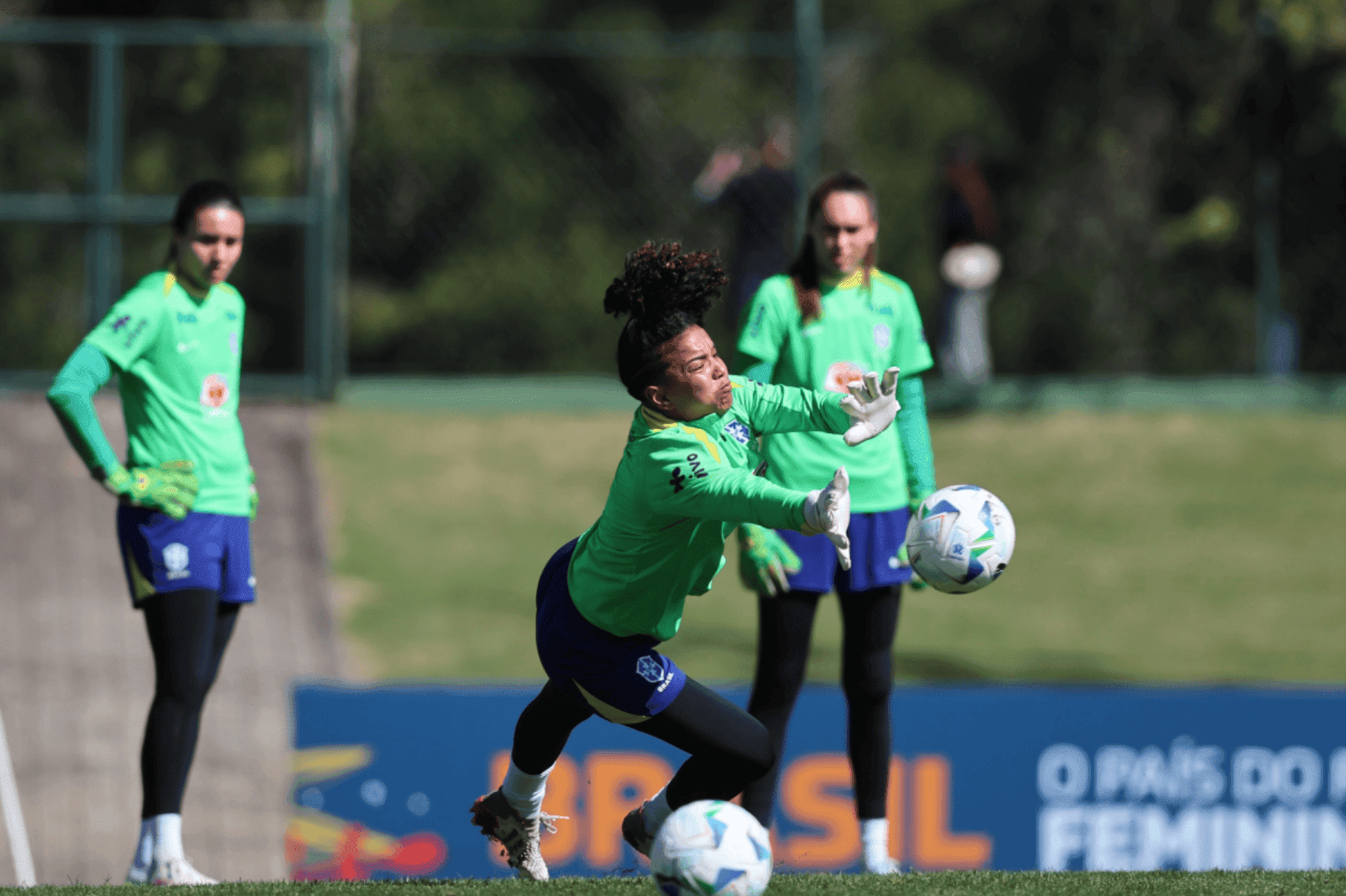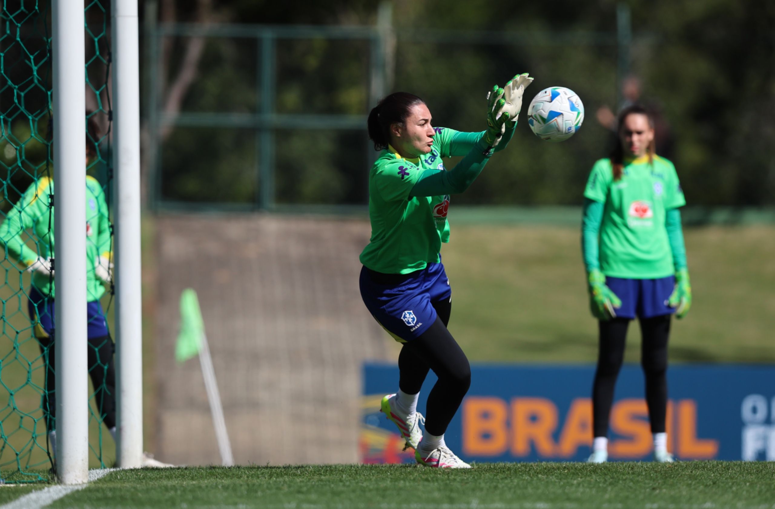 O trabalho da Seleção Brasileira Feminina na manhã deste sábado (5), na Granja Comary, deu atenção especial às goleiras da equipe. O técnico Arthur Elias e o preparador de goleiras Édson Júnior vem observando o desempenho individual e ajustes para o estilo de cada uma. E o exemplo de evolução está dentro do elenco: Lorena, que disputou a Copa América de 2022 e foi a única na posição que não sofreu gols, desempenho que espera repetir na competição deste ano.