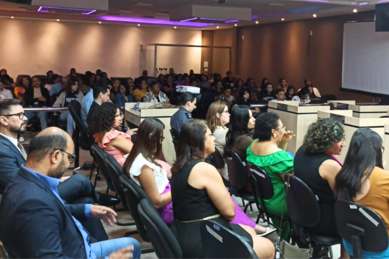 PALESTRA – Durante o evento realizado na Câmara Municipal, a presidente da Associação Brasileira das Mulheres de Carreira Jurídica, Manoela Gonçalves, falou sobre a “A importância das Redes de Atendimento e Enfrentamento à Violência Doméstica contra as Mulheres”.