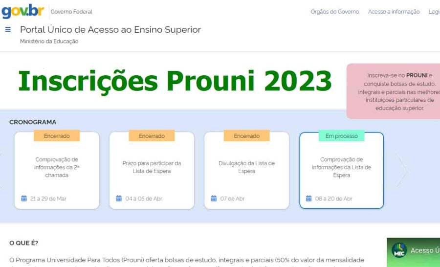 Confira o cronograma completo da primeira edição do Prouni 2023 a seguir: