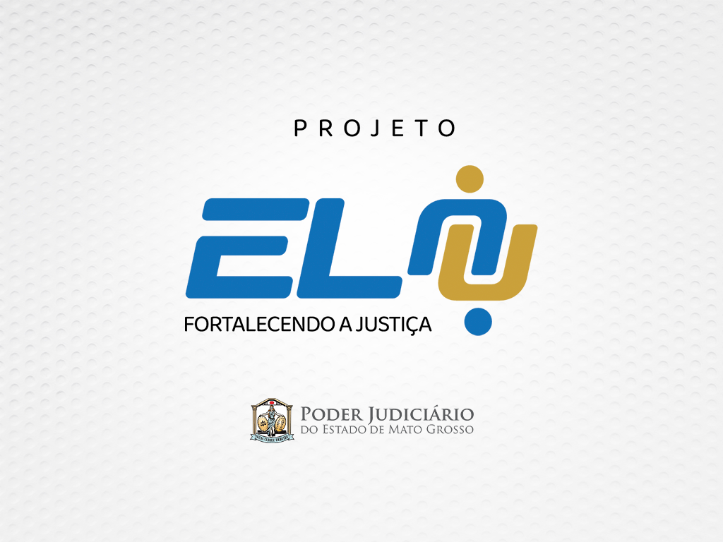 Primeira imagem: arte com a marca do Projeto Elo centralizada, na parte inferior da imagem está a marca do Poder Judiciário de Mato Grosso. Ambas estão aplicadas em um fundo branco texturizado.
