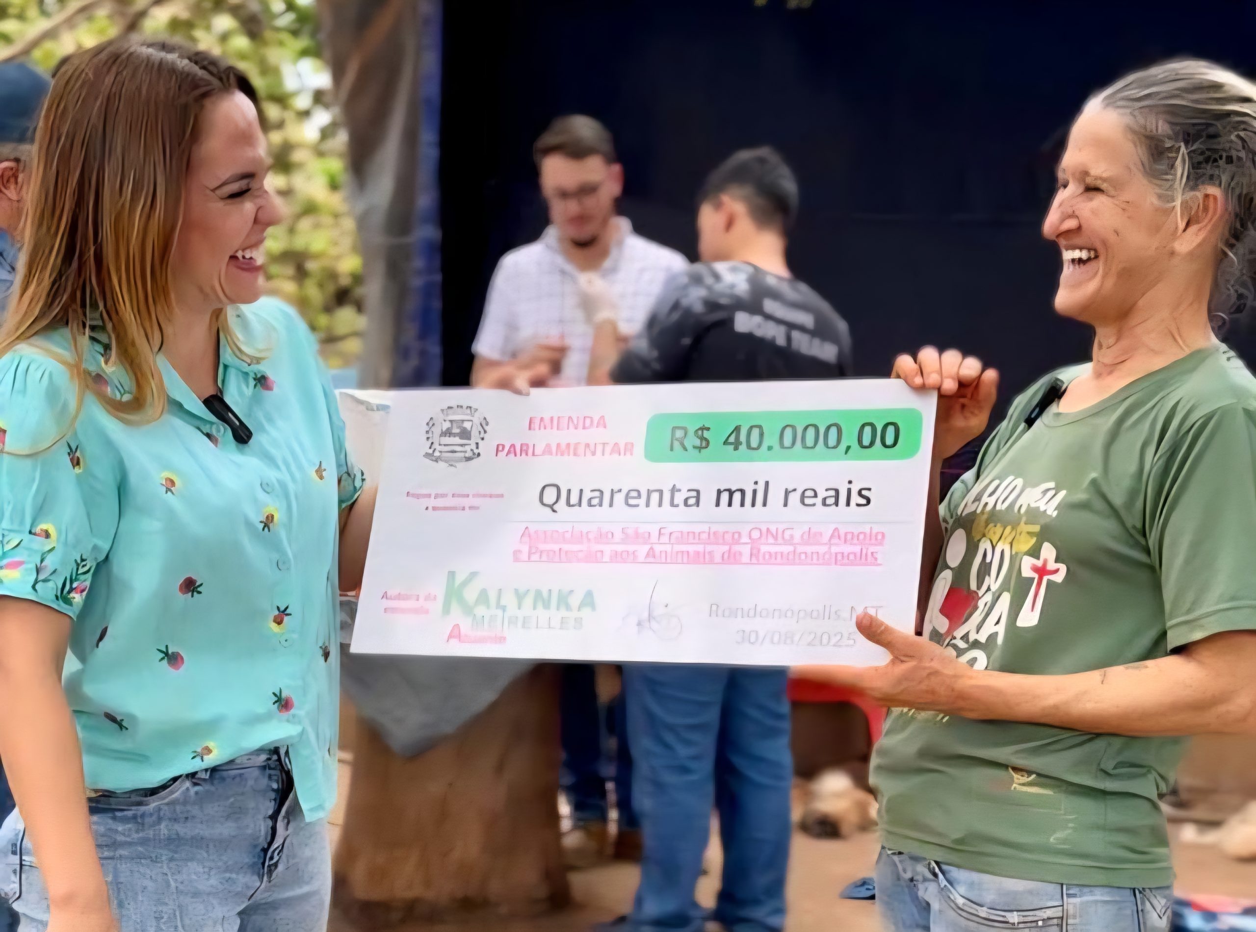 A vereadora Kalynka Meirelles reforçou seu compromisso com o bem-estar animal ao oficializar, nesta semana, a entrega de uma emenda parlamentar no valor de R$ 40 mil para a ONG São Francisco de Proteção aos Animais, em Rondonópolis. O recurso será repassado em cinco parcelas de R$ 8 mil e tem como objetivo garantir melhores condições para o cuidado dos cerca de 600 animais abrigados, entre eles 150 gatos, sob a administração da protetora Rose Brosko.