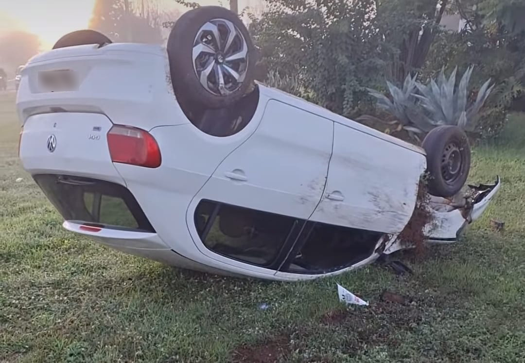 Um acidente grave ocorreu na madrugada desta segunda-feira (26) na rotatória que liga a Avenida dos Estudantes à Avenida Júlio Campos, em Rondonópolis (MT). O motorista de um Gol branco perdeu o controle do veículo, que capotou e ficou com as rodas para cima, parcialmente destruído.