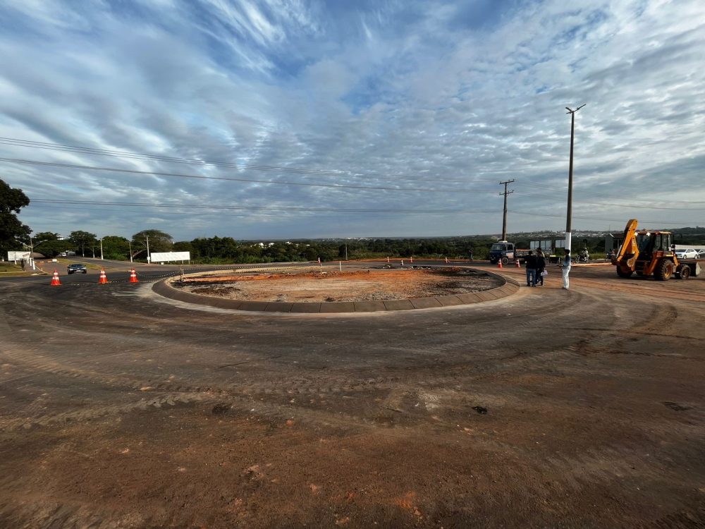 Uma das partes mais importantes da obra que já está concluída é a galeria de águas pluviais. Com o período de estiagem, foi possível concluir os berços e instalar as aduelas e assim fazer o aterramento para a via de rolamento. A estrutura da rotatória também já está pronta, faltando apenas preparar o solo, preencher com terra, fazer o paisagismo, além da retirada de alguns postes.