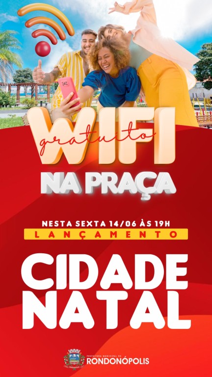A partir de ontem (14), a população de Rondonópolis vai poder contar com o serviço de Wi-Fi gratuito nas praças da cidade. É que a Secretaria Municipal de Ciência, Tecnologia e Inovação (Seciti) inaugura, nesta noite, às 18h, no Bairro Cidade Natal, o Projeto Wi-Fi na Praça. Além desse, outros quatro bairros vão estrear o projeto neste fim de semana. No sábado ganham um ponto de internet gratuita as praças do Jardim Eldorado, às 16h, e do Serra Dourada, às 18h. Já os bairros Jardim Tropical e Vila Verde vão poder conferir a conexão à internet no domingo, respectivamente às 16h e 18 horas.