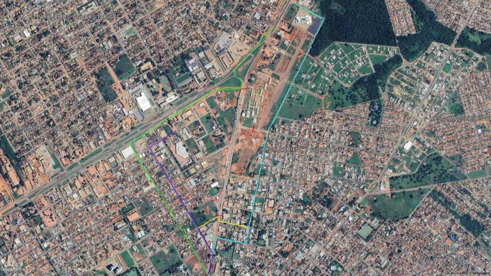 Outra opção para os motoristas que desejam acessar a BR-364 em direção a Cuiabá é pela Alameda das Rosas, passando pela Vila Adriana.