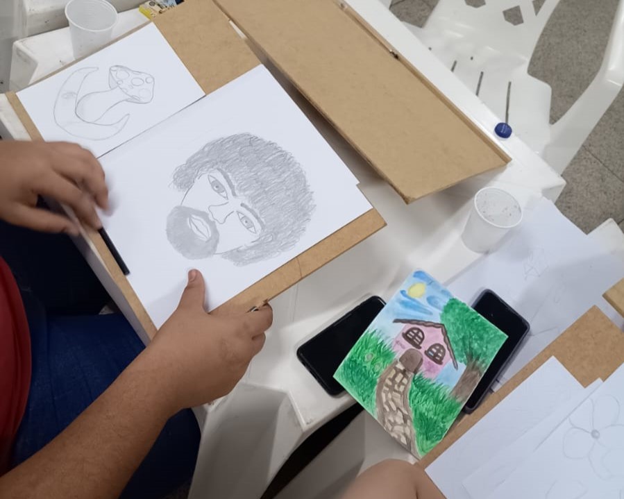 Oficinas de artes visuais, pintura facial e escultura de balão são mais algumas diversões para as crianças soltarem a mão e a criatividade e brincarem com as cores à vontade. Essas atividades são ofertadas pela Cultura em conjunto com o coletivo circense Trupe do Tio Faísca, formado por artistas locais.
