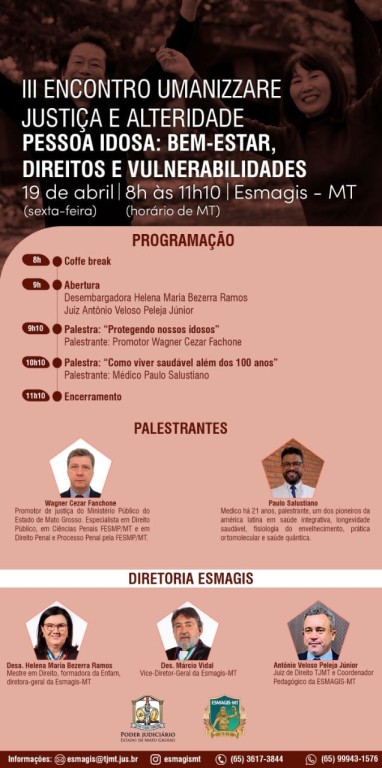 Palestrantes – O evento terá início às 9h, com a participação da diretora-geral da Esmagis-MT, desembargadora Helena Maria Bezerra Ramos.